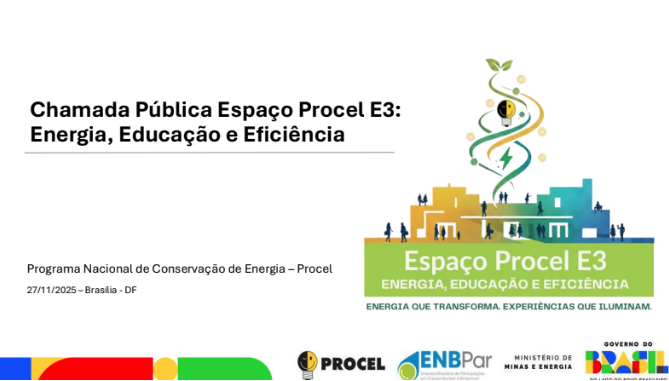 A Chamada Pública Procel “Espaço Procel E3 – Energia, Educação e Eficiência” seleciona propostas para criar espaços expositivos e educativos em centros culturais, museus, espaços de ciência ou bibliotecas.